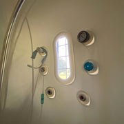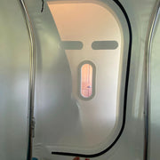 Windows: Four 15-inch wide double layered windows, strategically placed: one at face level in front, one in the back, and one on each side of the hyperbaric chamber.