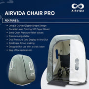 Designed with comfort, accessibility, and control at its core, the Airvida Chair Pro delivers a relaxing, personalized, and fully adaptable hyperbaric experience—ideal for anyone seeking advanced wellness without compromising ease of use.