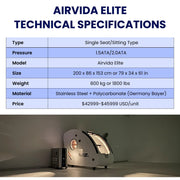 If you’re ready for a top-tier hard-shell HBOT chamber that delivers maximum therapeutic benefits, exceptional comfort, and uncompromising safety, the Airvida Elite is the premium choice trusted by athletes, wellness centers, and health-conscious individuals worldwide.