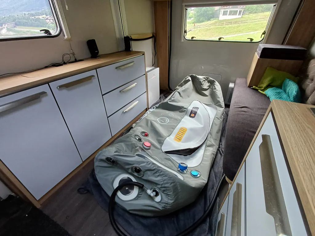 I've used mhbot for over 12 years now and recently was looking for a new chamber specifically for traveling. OxyRevo was very helpful in designing and manufacturing a custom sized 28" Apex chamber that fits my travel trailer. The whole process from first contact to delivery took only one month, which is amazing! The sales representative was very helpful, quick to respond, and made me an amazing offer I couldn't refuse. After receiving the chamber I was pleasantly surprised with the quality. Packaging was top notch, and the chamber itself is very high quality. The material is actually a lot thicker than I was used to with my old chamber. Very sturdy! But maybe also a lot heavier than I was expecting. Some of the features are really nice, like the adjustable pressure inside, air cooler / dehumidifier, inside pressure gauge, and the noise level inside is a lot less than I was used to. I'm not the biggest fan of the soft memory foam mattress (I prefer harder), and perhaps the shipping procedure could have been a bit more transparent. But other than that I can fully recommend OxyRevo and their hyperbaric chambers!