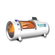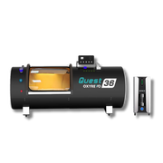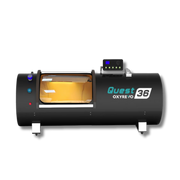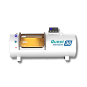 The OxyRevo Quest36 is a bigger lay down hard-shell hyperbaric chamber made of stainless steel, measuring 89” long and 36” wide. It runs at 1.5 ATA and can reach up to 2.0 ATA, giving flexibility for faster therapy results.
