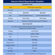 The OXYREVO Quest36 Hard Hyperbaric Chamber includes everything you need to start your hyperbaric oxygen therapy journey. The package includes: