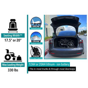The standard 12AH lithium-ion battery is airline and cruise approved, providing up to 10 miles of driving distance.
