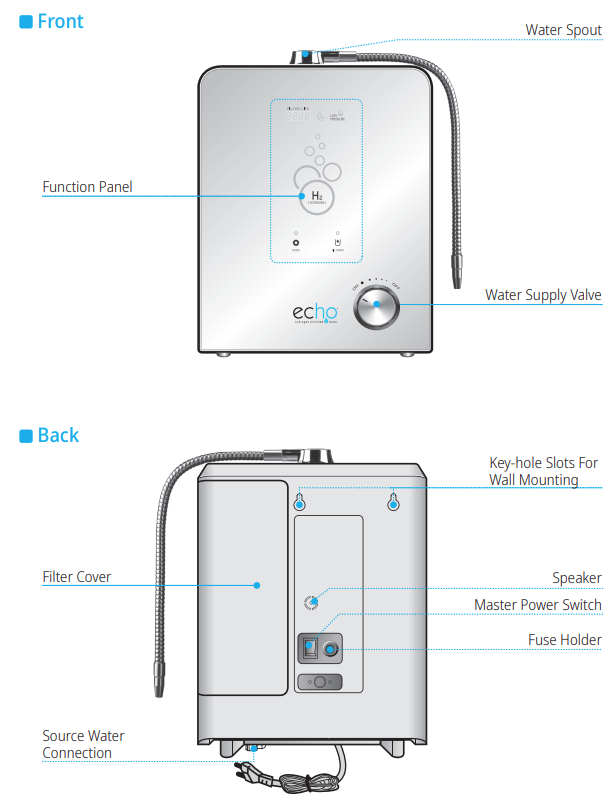 The Echo H2® can be installed either on your countertop or under the sink. It requires basic plumbing connections for water input.
