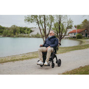 The Rollz Motion Electric weighs 62 lbs. including battery, and the wheelchair package adds an extra 9.5 lbs. This makes it a true lightweight electric wheelchair, far easier to handle and transport compared to bulkier, heavier models. Its compact, foldable design ensures effortless portability and convenience.