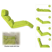 About the Length: Plenty of room for one person to sit comfortably in an adjustable reclining chair and still move around. The chair adjusts to lay flat, or you can sit up at 90 degrees. The chair can support up to 330 lbs. without rear support. The chair adjusts to 90°-fold and is then 29″ L x 19″ W x 28″ H. When the chair is down, its length is 56".