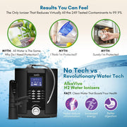 The AlkaViva Athena H2 is an innovative 7-plate water ionizer with a new, advanced SMPS power supply, Smart-Design Electrodes, Auto-Adjust Power feature and DARC cleaning system. A futuristic Hydrogen Infusion Technology design optimizes performance, especially in the production of molecular hydrogen (H2.) The Athena H2 performs especially well in 飽RP and H2 production at lower drinkable levels of pH water. A high performance standard, solid reliability, and beautiful packaging makes the Athena H2 the new standard in the water ionizer industry.