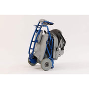 Total Frame Weight: 47 lbs Heaviest Piece Weight (rear frame): 28 lbs Front Frame: 19 lbs Battery Weight: 18 lbs Total Overall Weight with Battery:65 lbs Driving Range:9 miles Speed:3.7-5 mph Battery:SealedLead Acid Width:23" Length:41" Height:34" Seat Width:18" Folding:Folds to the size of a suitcase Portability: Keep in one piece or disassemble Maximum Load:Up to 265 lbs Horsepower:0.7 watts Wheels:Solid (anti-puncture). Two wheels in the back, one double wheel in front Tires:Diameter 8", Width 2" Width Between Wheels:23" Length Between Wheels:31.5"